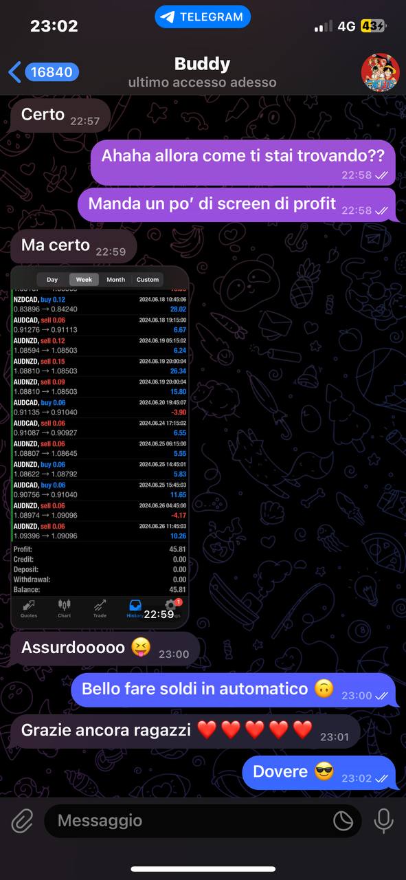 Dopo anni di operatività sui mercati, il team Boia ha deciso di entrare “a gamba tesa” sul mercato, perché stufo di tutti i fuffaguru che promettono soldi con il trading senza aver mai ottenuto risultati concreti. Vogliamo invertire questo fenomeno, ed è proprio per questo che, quantomeno al momento, offriamo gratuitamente i nostri servizi per il primo mese